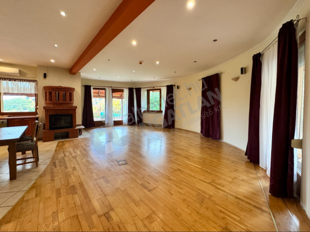 - Közel 70 m²-es amerikai konyhás nappali, nagy terasszal, amelyről gyönyörű kilátás nyílik a környező természetre. A terasz északkeleti tájolásának és fedett kialakításának köszönhetően nyáron is kellemesen használható. A konyha gépesített - mosogatógéppel, sütővel, tűzhellyel és hűtőszekrénnyel felszerelt. Innen az ablakon át még főzés közben is élvezhetjük a panorámát.