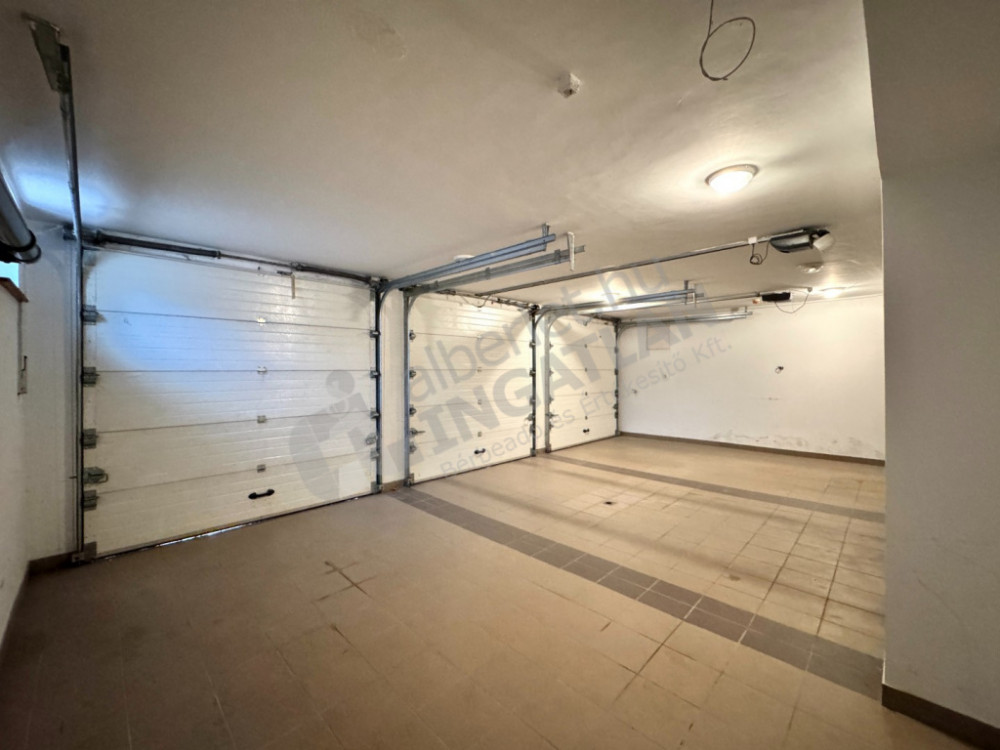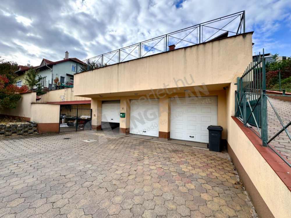 egy három autó beállására alkalmas elektromos kapuval ellátott garázs (60 000 Ft/hó díjért bérlendő), valamint további parkolási lehetőség is van az udvaron és a ház előtti burkolt területen.