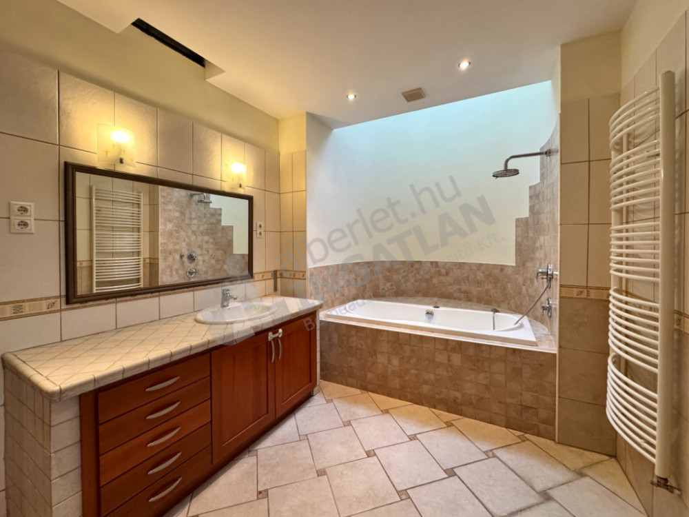 - A szinten található egy külön terasz és kertkapcsolatos szoba, melyből kádas fürdőszoba nyílik.