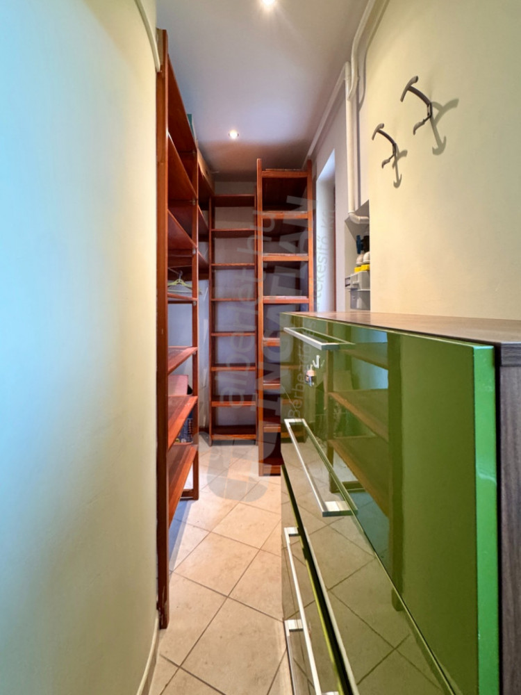 - Az előtérben praktikus gardrób kapott helyet, innen indul a impozáns lépcső, amely levezet a pincébe.