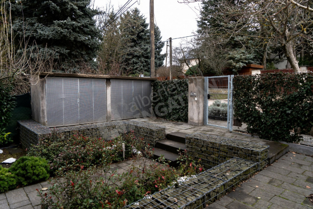 Kerti tároló, két gépkocsi számára a kertben beállási lehetőség.