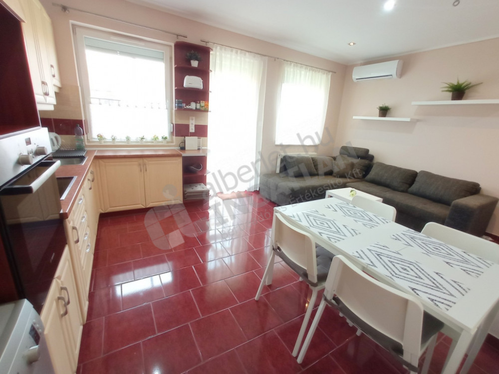 A lakás teljesen bútorozott és gépesített, azonnal költözhető.