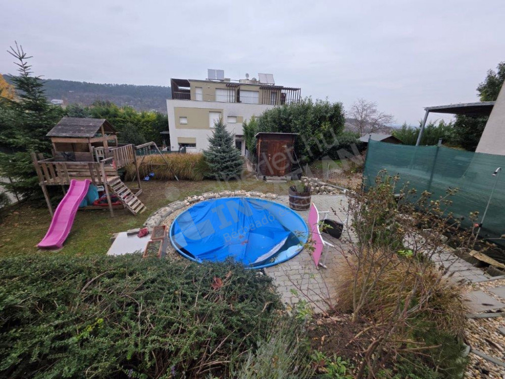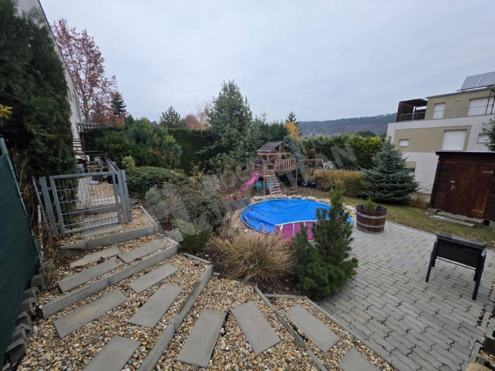 - alsó szint: nappali-étkező-konyha(32 m2), wc, terasz , kert(medence, kerti tároló, (játszóvár))