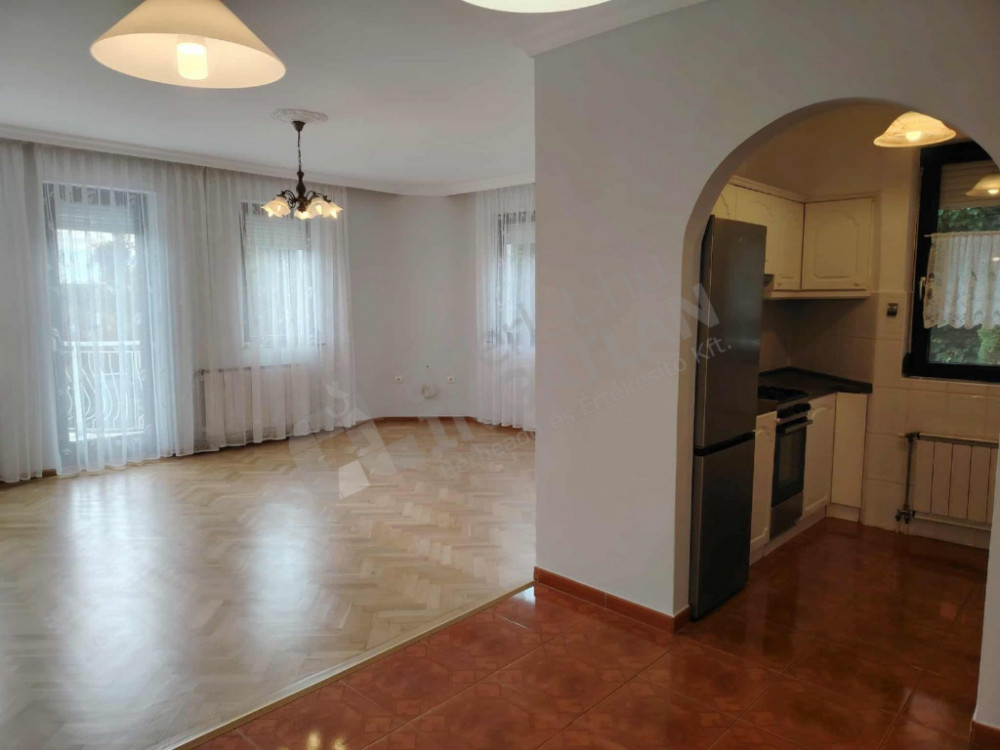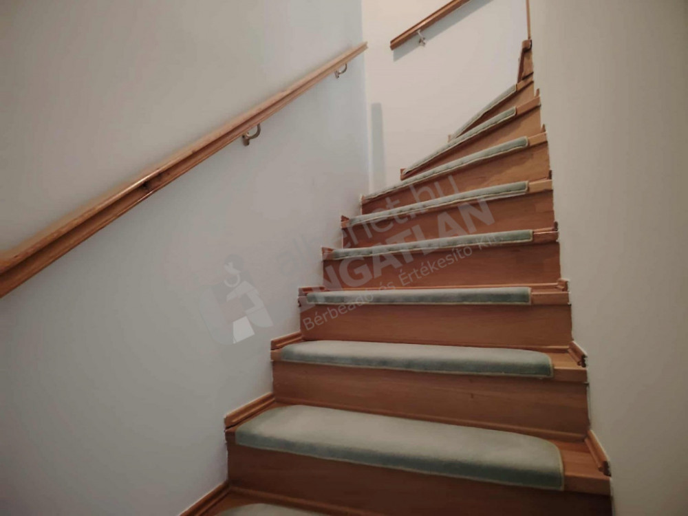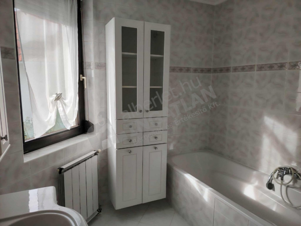 Budakeszin, csendes utcában 150 m2-es 4 különnyíló nagy szoba, nappali, 3 fürdőszobá, több nagyteraszos gardrobszekrényekkel ellátott ikerház rész azonnali költözéssel kiadó. A nappaliban légkondicionáló! Konyha géesített, hűtővel, fagyasztóval, mosogatógéppel, kombinált tűzhellyel.