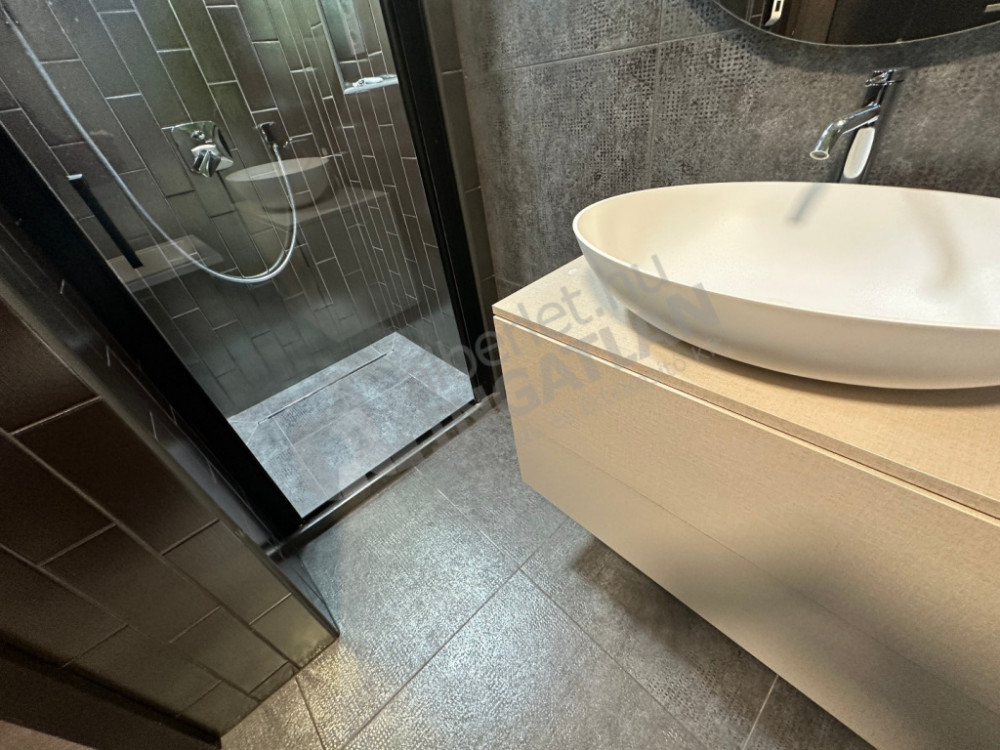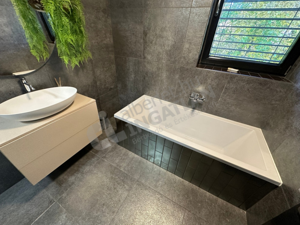 Magas minőségű műszaki tartalom és burkolatok, hőszivattyús mennyezeti hűtés-fűtés, légcserélő rendszer, prémium kategóriás bútorok és műszaki cikkek.