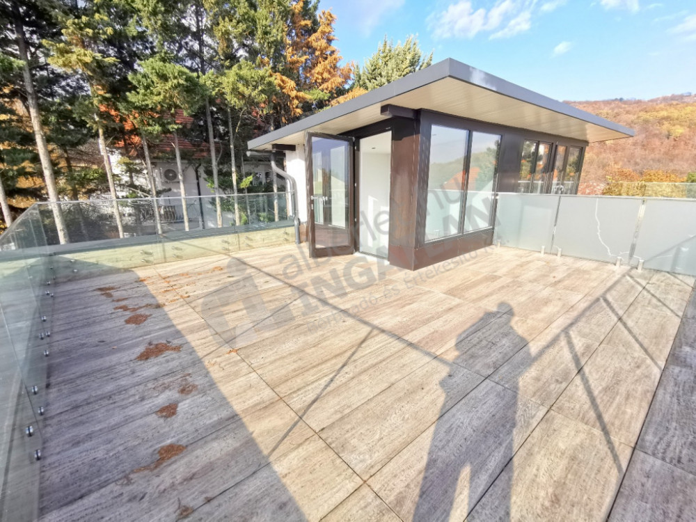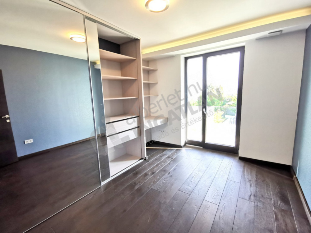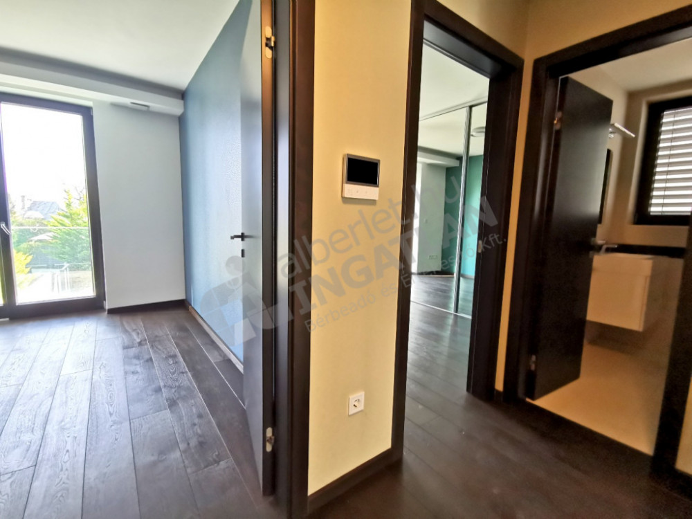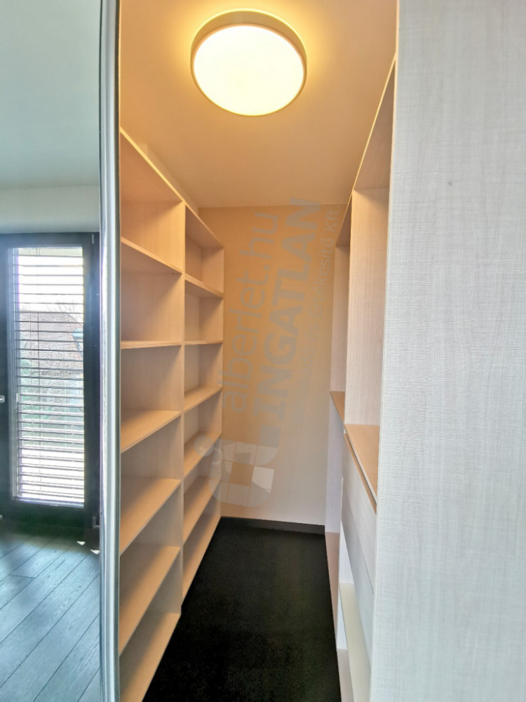 A lakáshoz hatalmas tetőterasz, valamint egy saját, 500 m²-es, gondozott KERTSÉSZ tartozik, amelynek fenntartásáról ROBOTFŰNYÍRÓ és kertész gondoskodik – mindez a bérleti díj részét képezi.