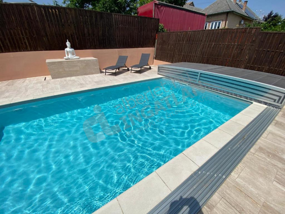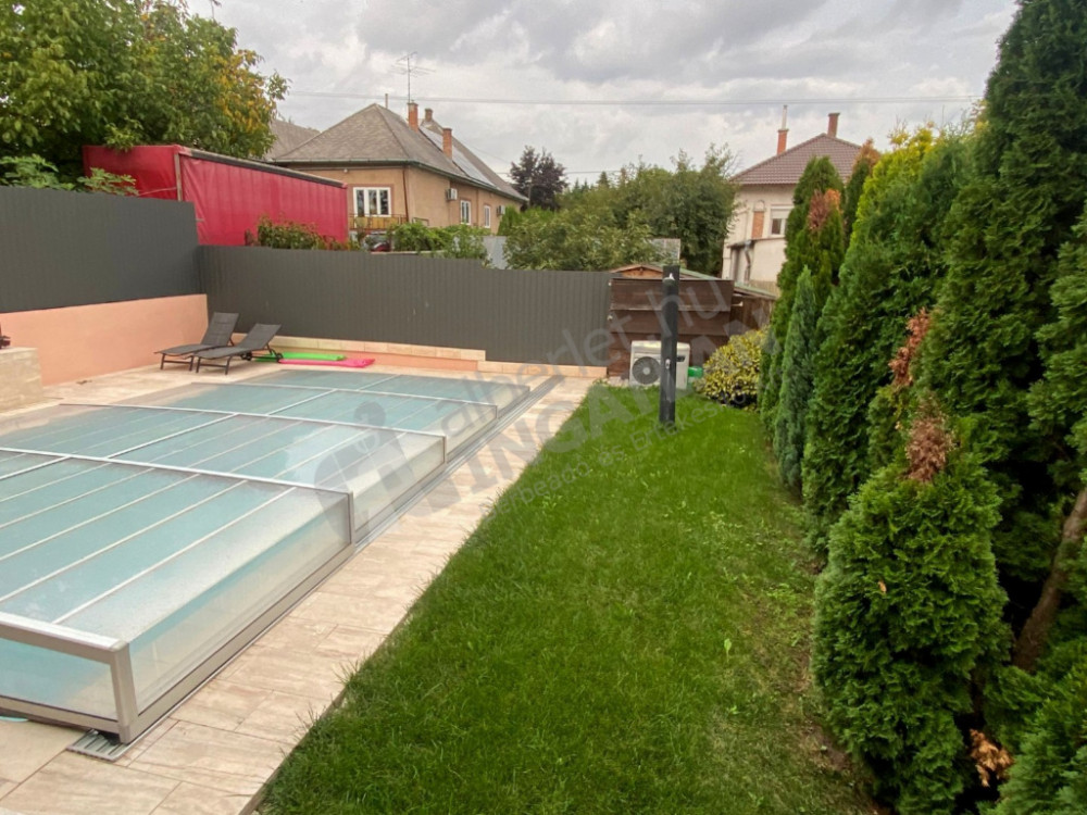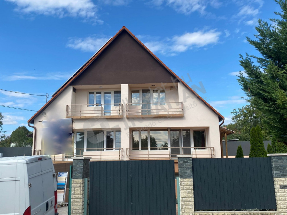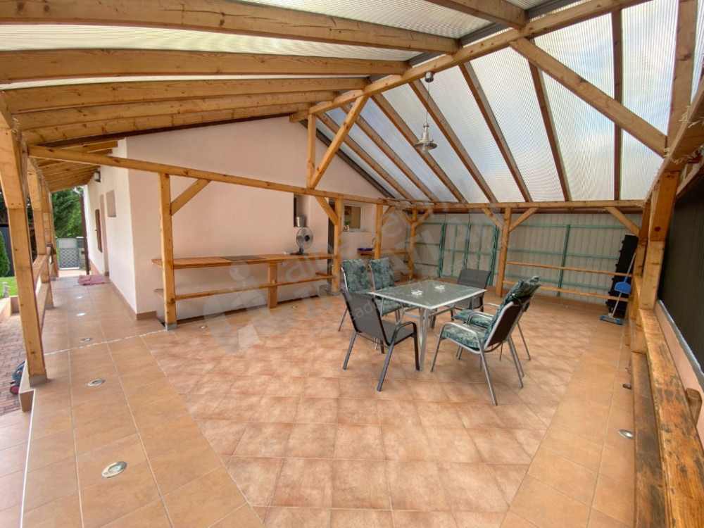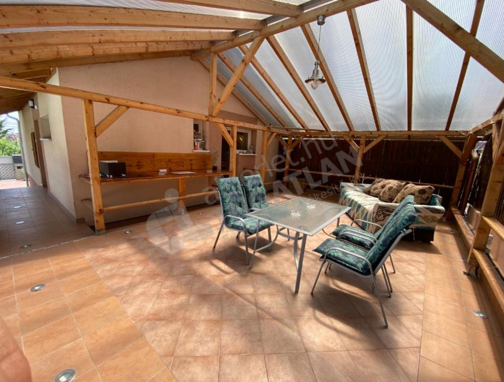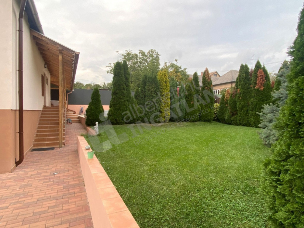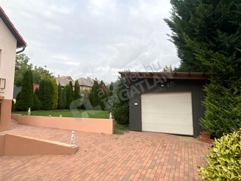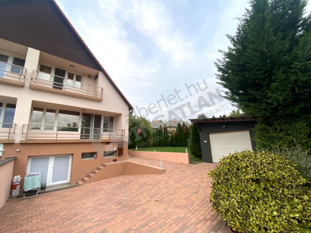 Teljesen felújított és berendezett, magas szinten felszerelt, gépesített, 2 szintes családi ház, fedett nagy terasszal, kerttel, fűtött prémium medencével kiadó, kerten belül 2 felszíni beállóhellyel.