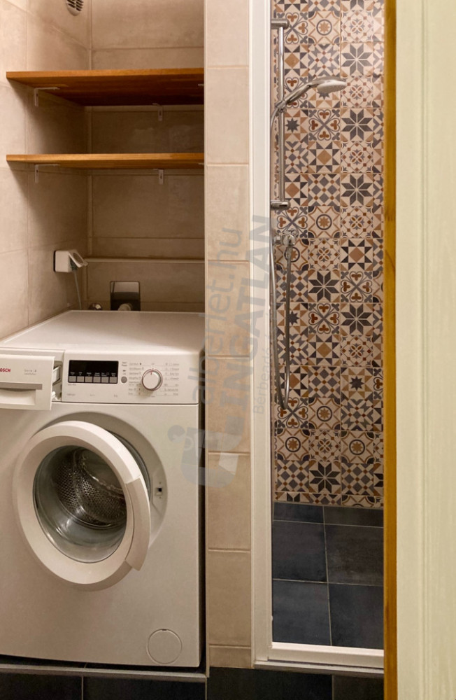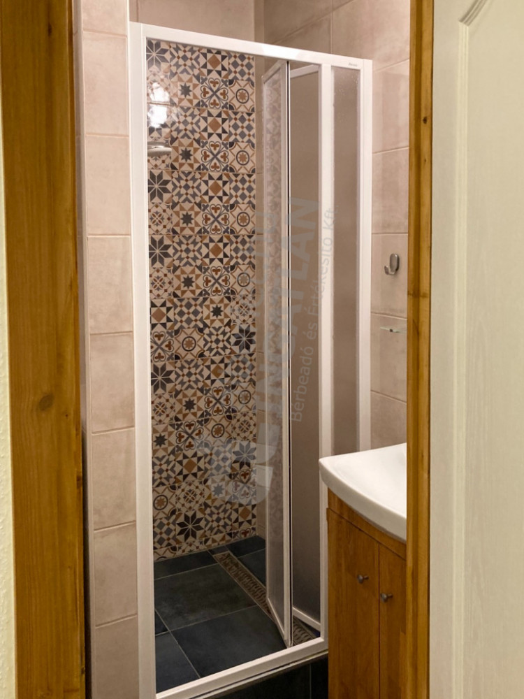 Modern, felújított fürdőszoba zuhanyzóval és MOSÓGÉPpel - wc külön helyiségben.