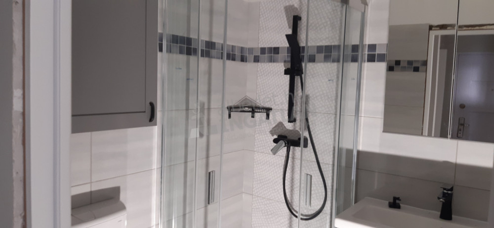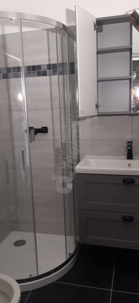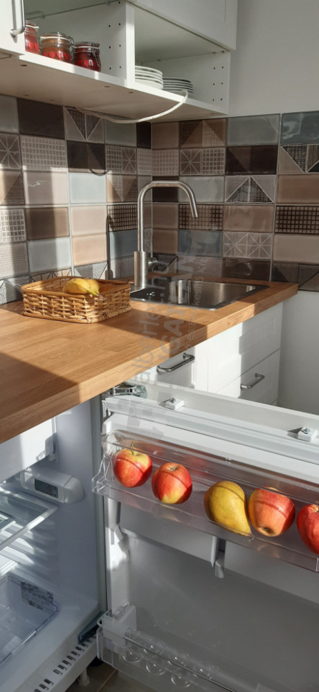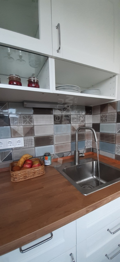 A konyha és előtér újonnan csempézve, új konyha és fürdőszoba bútorok kaptak helyet a lakásban.