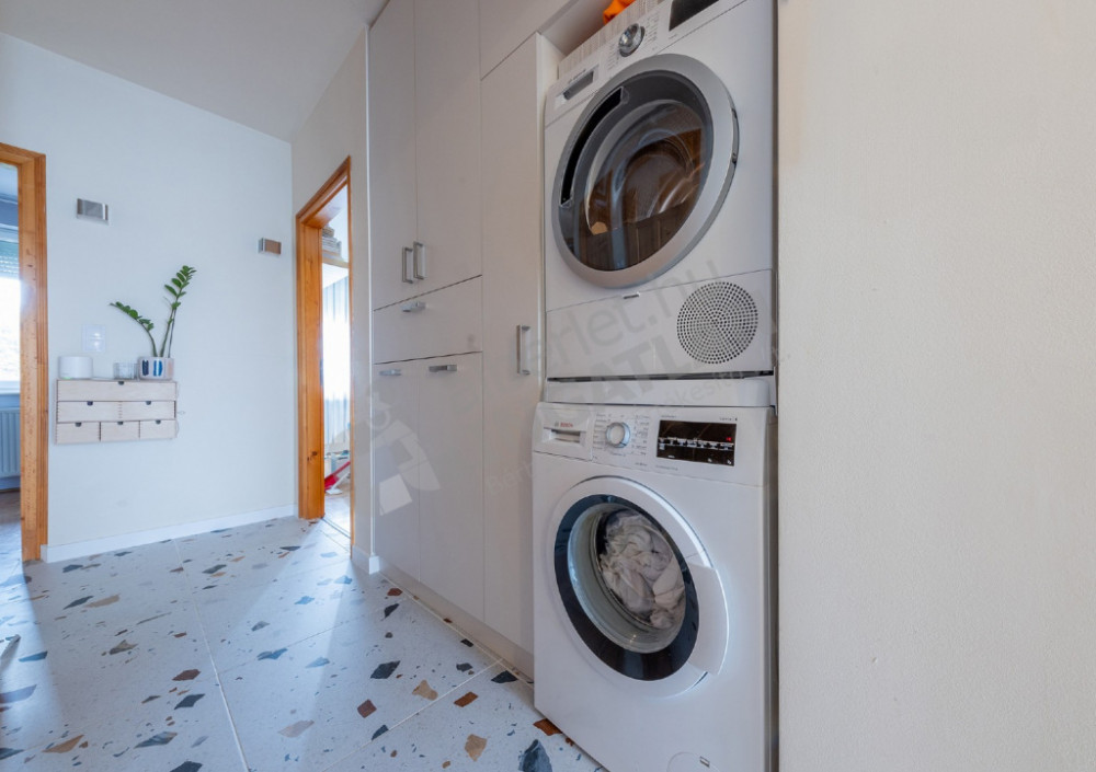 -teljesen felszerelt konyha(indukciós főzőlap, magas sütő, beépített mosogatógép, beépített kombi hűtő, beépített mikro, páraelszívó)