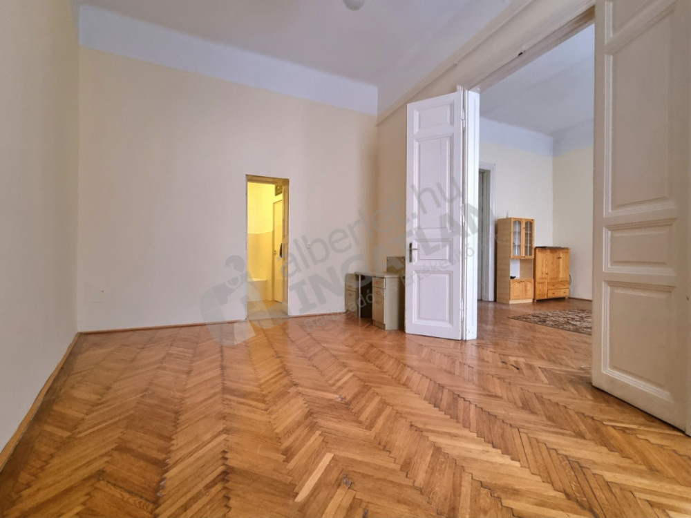 A tágas nappali és különbejáratú hálószoba jól szeparált, a konyha ablakos, a fürdő és WC külön helyiségben található. A 380 cm-es belmagasság klasszikus, polgári hangulatot ad a térnek.
