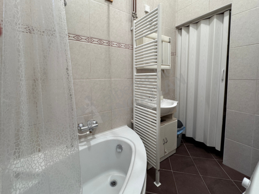 - A fürdőszobában sarokkád, mosógép és harmonikaajtóval elválasztható wc