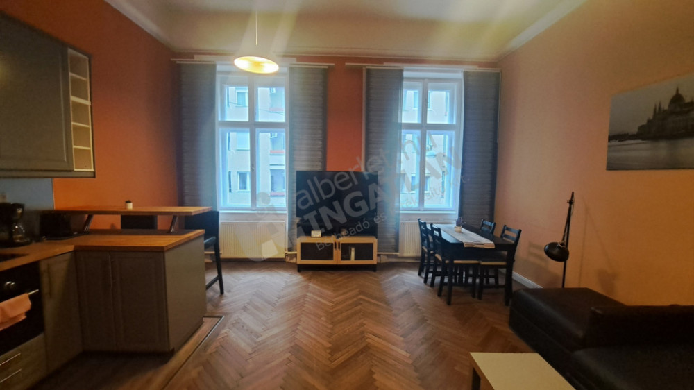 - 20 nm-es, teljesen berendezett, légkondicionált, amerikai konyhás nappali, utcai kilátással