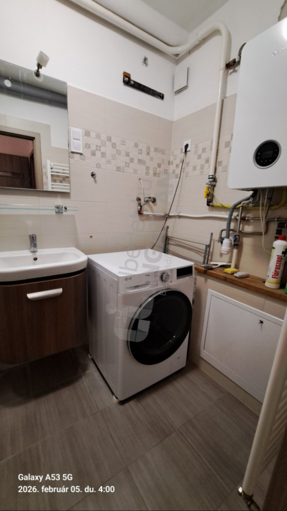 FÜRDŐSZOBA elegáns kabinos zuhanyzóval, új mosógéppel és mosdóval