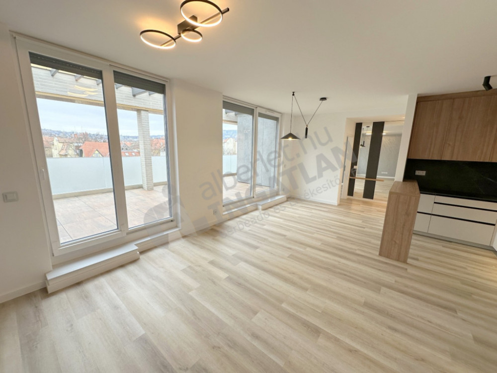 Gellérthegy utcában kiadó panorámás, újépítésű penthouse, 27m2-es terasszal.