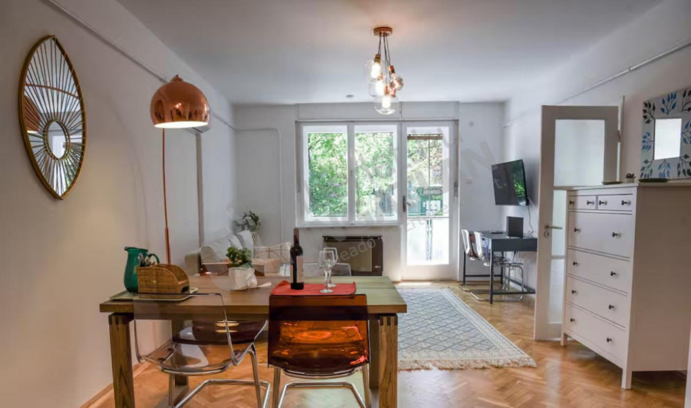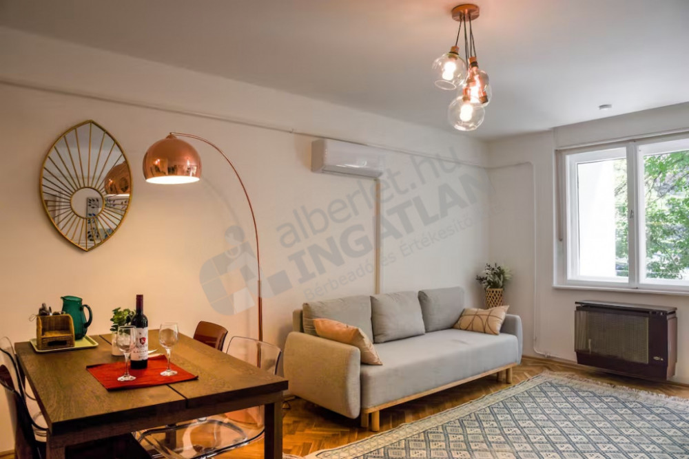 Várfok utcában, Széll Kálmán téri metrótól 5 perc sétára kiadó egy utcára és zöld udvarra néző, két és fél szobás, nagy erkélyes lakás.