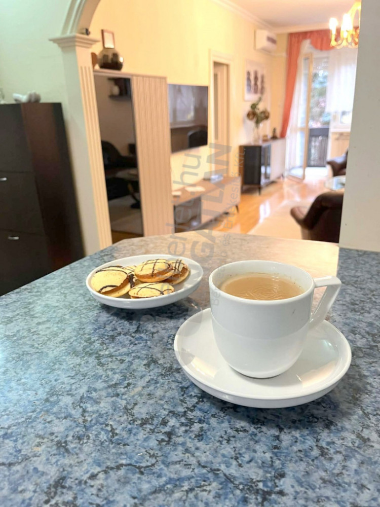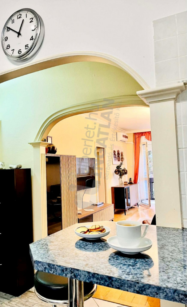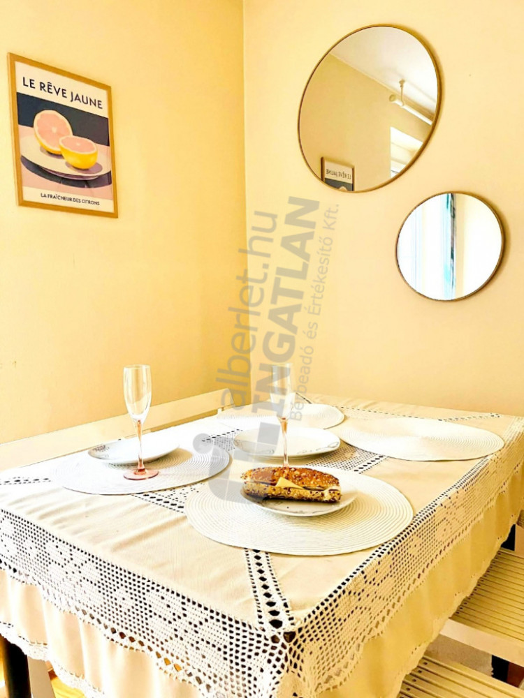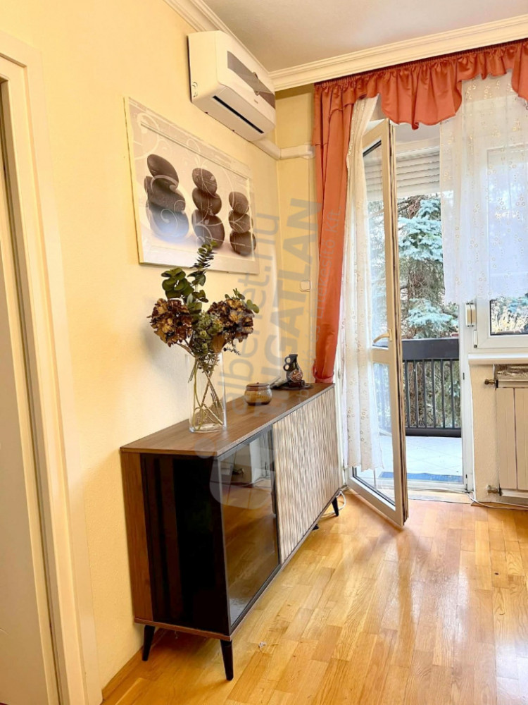 Az ingatlan két külön nyíló szobából, tágas nappaliból és erkélyből áll, teljesen BERENDEZETT, GÉPESÍTETT (mosógép, mosogatógép, hűtő, sütő, főzőlap, mikró)