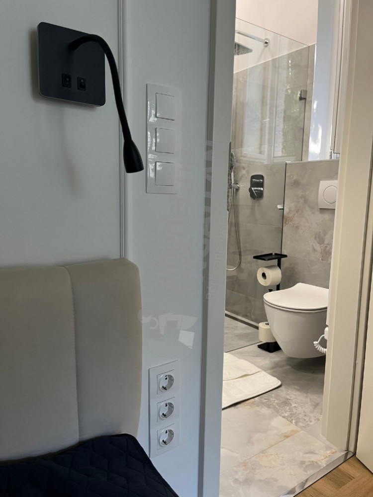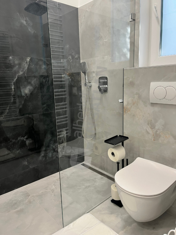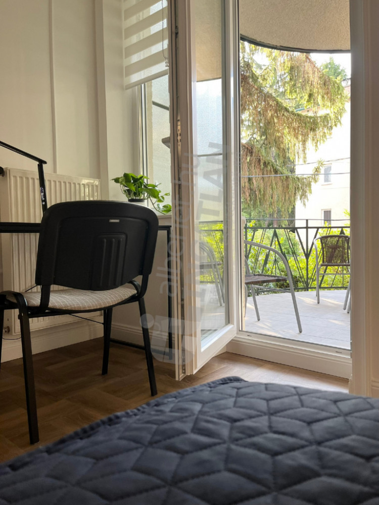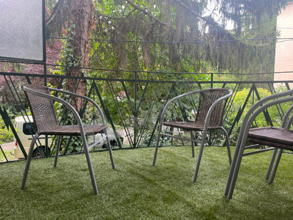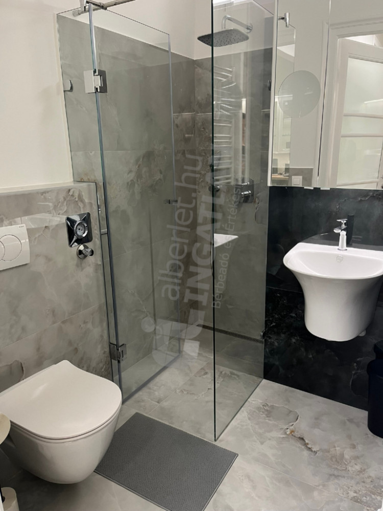A lakásban teljes körű felújítás történt, új burkolatok, új konyhabútor, beépített szekrények az erkélyen kerti bútor, műfű, mindkét szobából kijárat a teraszra. Választható színhőmérséklet, világítás a szobákban.