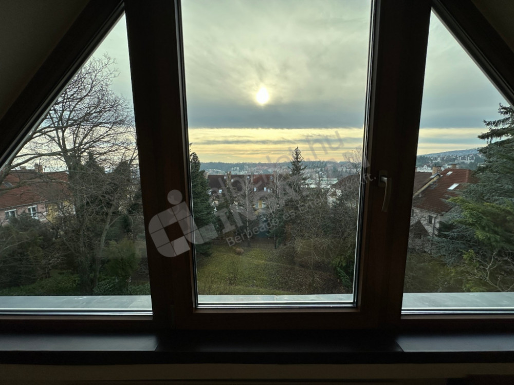 Gyönyörű kilátás a nappaliból, mely délnyugati fekvésű, két oldalról is nagyméretű ablakokkal.