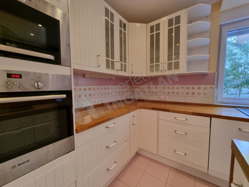 In the 2nd district of Budapest, in a quiet, elegant street of Rózsadomb, a renovated, bright, 71 m² brick apartment is for rent on the first floor of a 3-storey, small condominium.