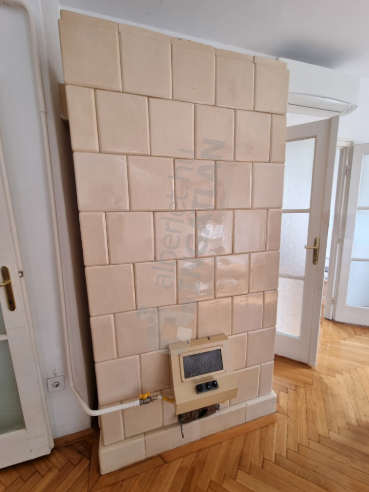 A fűtést gázzal üzemelő cserépkályha biztosítja, a meleg vizet villanybojler adja.