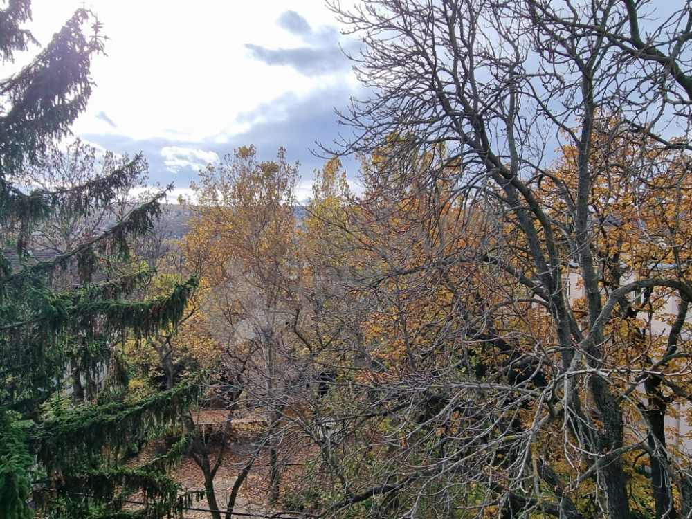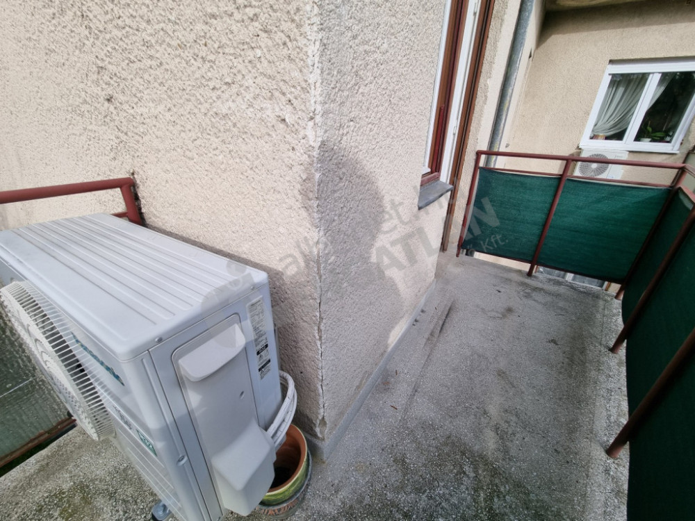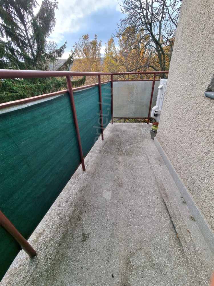 A lakás erkéllyel is rendelkezik, ahonnan a zöld környezetre nyílik kilátás.