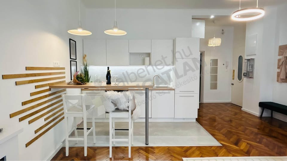 Egy frissen felújított, 55 nm-es, háromszobás lakás kiadó a Batthyány tér közelében, egy csendes, hangulatos mellékutcában.
