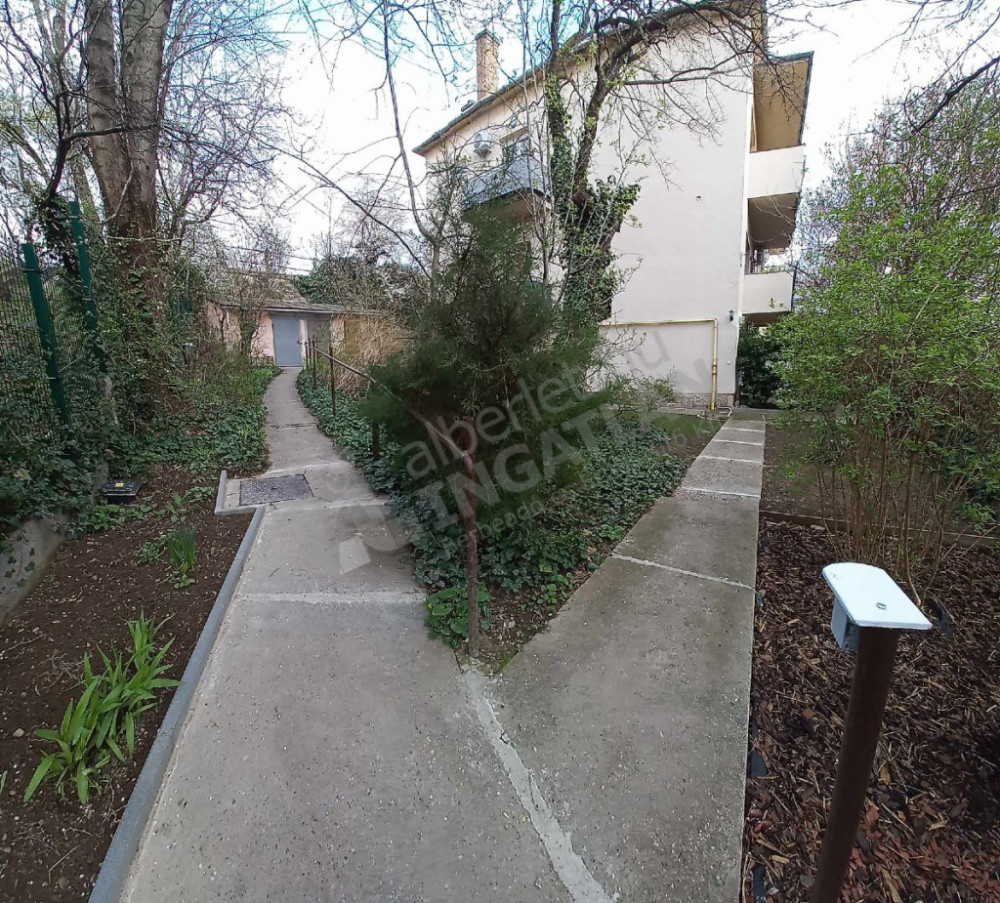 A belváros közelsége és a természet nyugalma ritkán találkozik ilyen harmonikusan: kiadó egy 30 m²-es, közvetlen kertkapcsolatos, bútorozott és teljesen gépesített garzonlakás, amely a Rózsadomb–Vérhalom tér környékének egyik legcsendesebb utcájában helyezkedik el. A lakáshoz tartozó, kb. 40 m²-es privát kertrész igazi oázis, ideális kisállatnak, grillezéshez vagy egy kávés reggelihez a madarak társaságában.