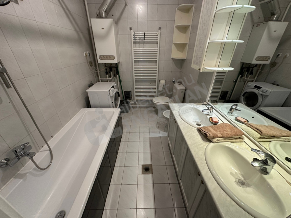 A lakáshoz tartozik kamra, gardrób, valamint egy kényelmes fürdőszoba káddal, mosó-szárítógéppel és WC-vel, továbbá külön vendég-WC is.