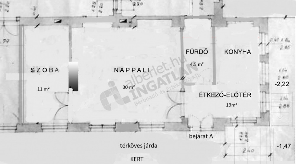 Elszeparált kertrésszel rendelkezik, mely kvázi teraszként funkcionálhat.