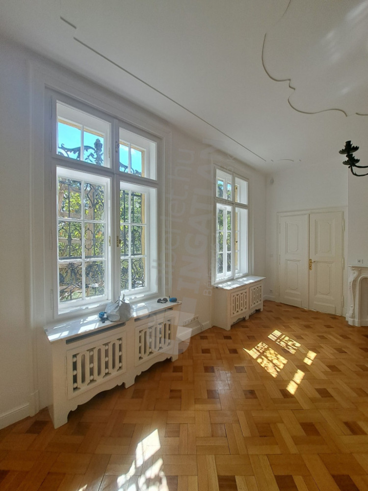Kiemelkedő minőségű felújítás, az eredeti villa részleteit megtartva. Gépesített konyha.
