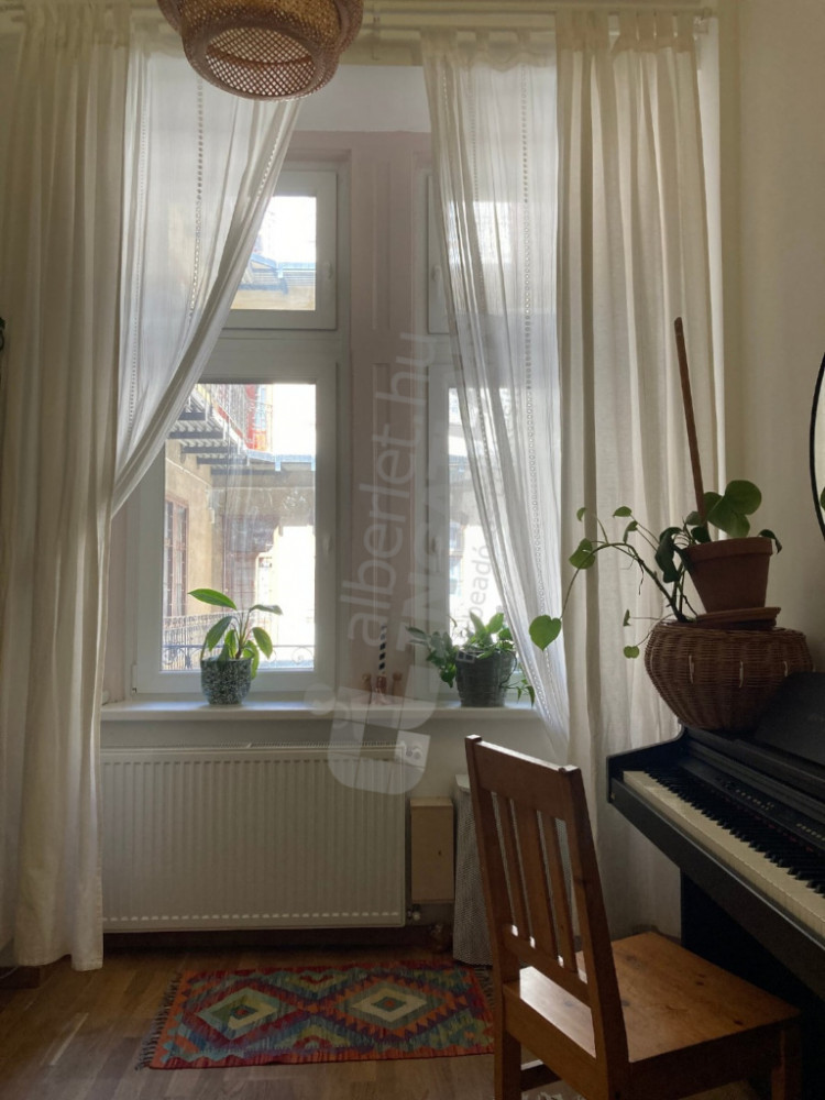 Kiadó egy polgári stílusú, 54 m²-es, két különnyíló szobás lakás a II. kerület egyik legkeresettebb részén. Az ingatlan különlegessége a kettős irányultság: egyik kijárata a pezsgő Török utca felé nyílik, a másik pedig a közvetlen közelben található zöld és csendes Gül Baba türbéje irányába.