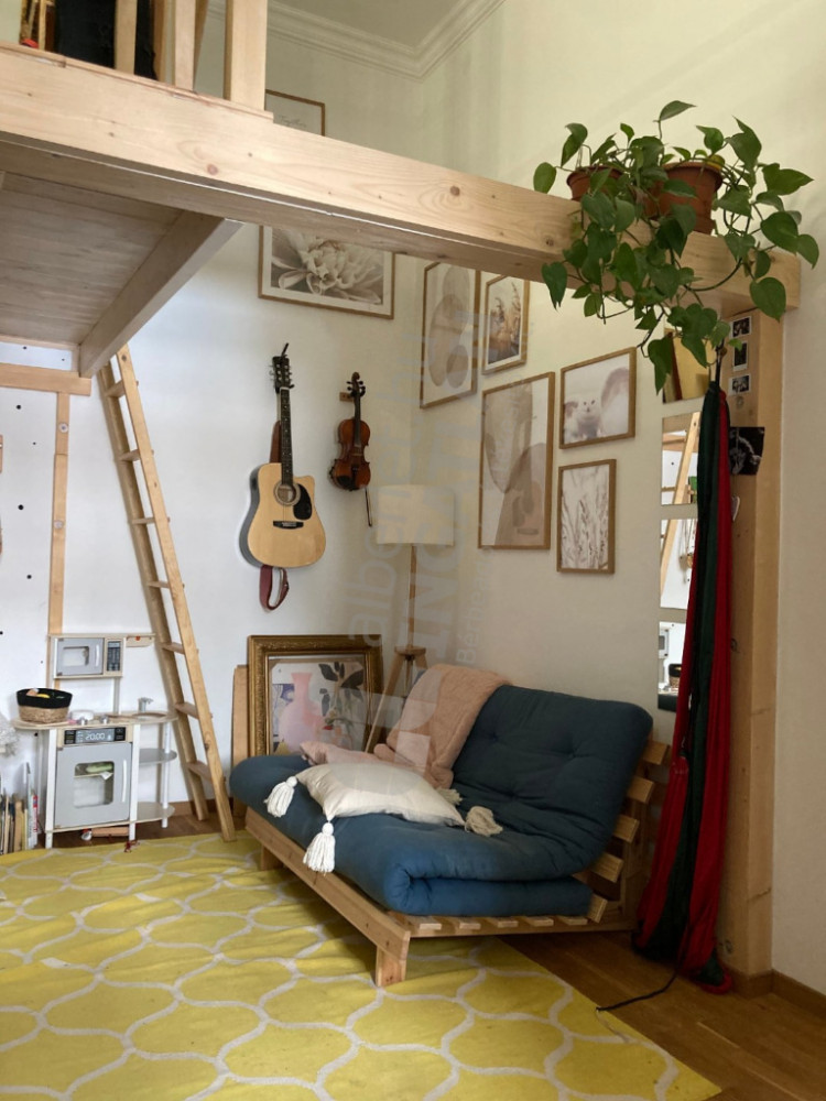 Tágas terek: A nagy belmagasság és a hatalmas ablakok rendkívül világossá és légies hangulatúvá teszik a lakást.