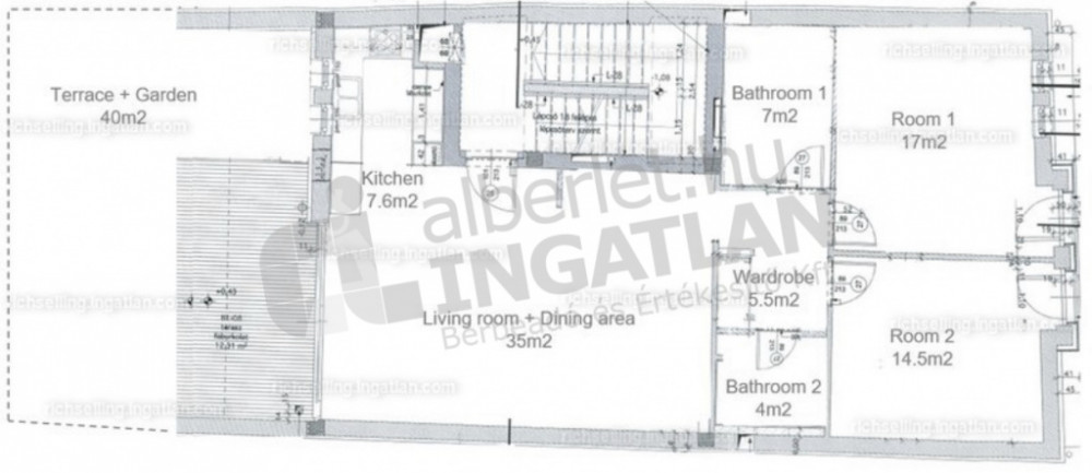 II. kerületben az Ürömi utcában 90 m2-es 3 szobás 1. emelti prémium lakását egyedisége, hogy utca frontról első emeleti, de a ház belső részéről földszinti, önálló kizárólagos használatú, elkerített 40 m2-es privát ker. 35m2-es amerikai étkezős nappali, 2 hálószoba, plusz gardrób helység, konyha és 2 fürdőszobából áll (egy kád+wc-s fürdőszoba és egy zuhanyzó+wc-s fürdőszoba).