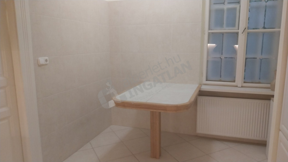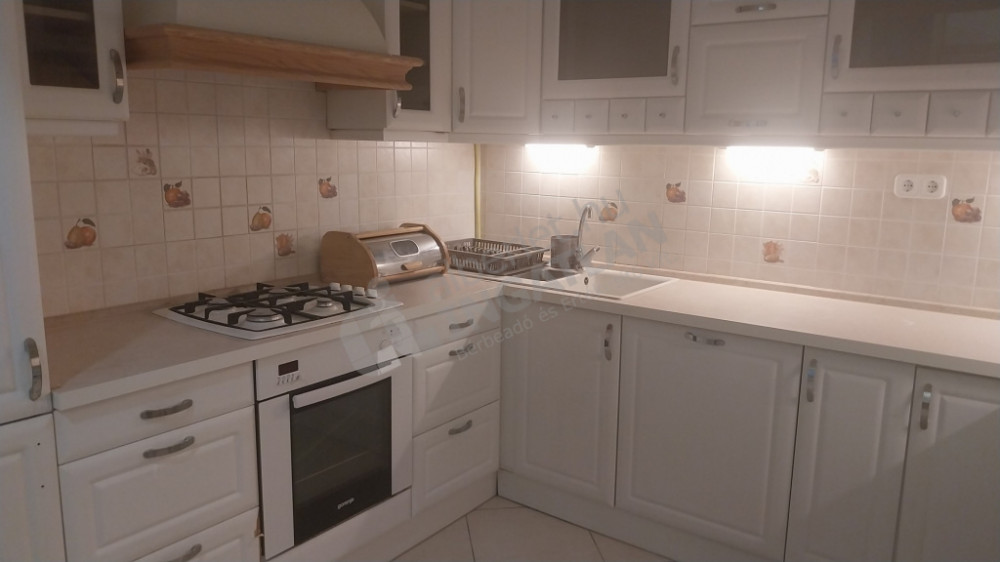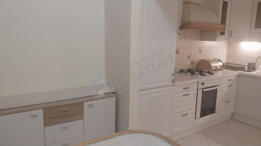 A tágas konyhában kombi hűtő, mikró, mosogatógép, gáztűzhely van elszívóval. Az ingatlan néhány éve teljes felújításon esett át. Fűtést és meleg vizet cirkó biztosítja.