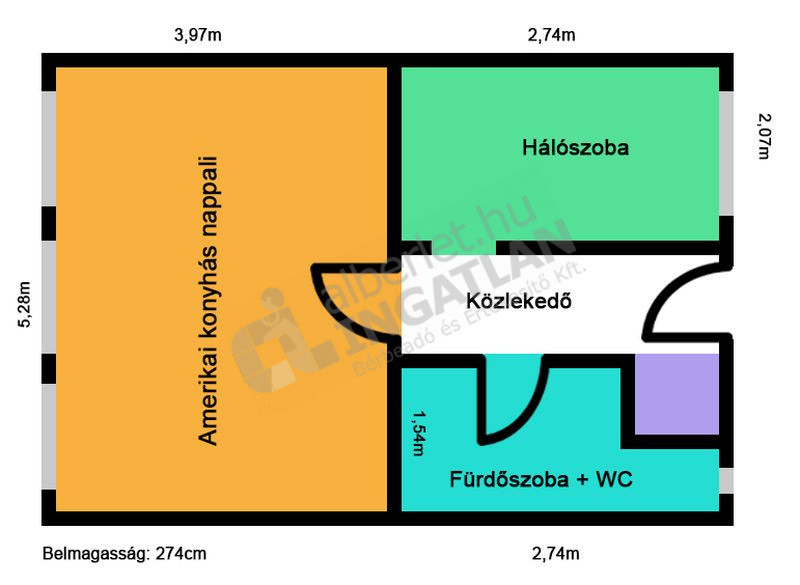 A lakás világos, kiváló elosztású. Fűtése elektromos, a gáz nincsen bevezetve