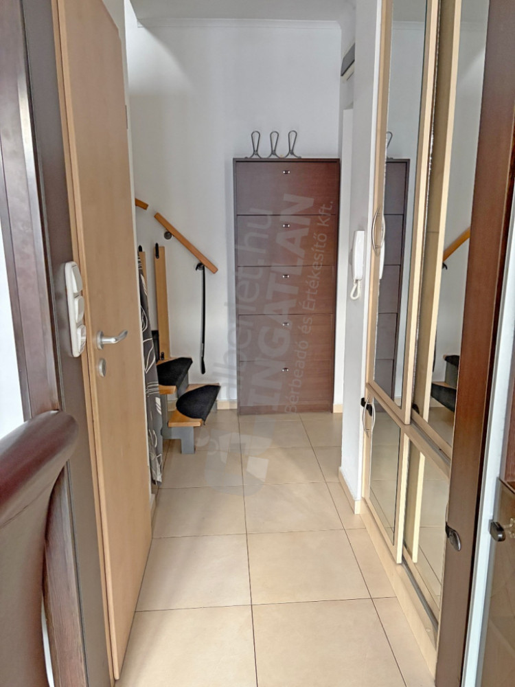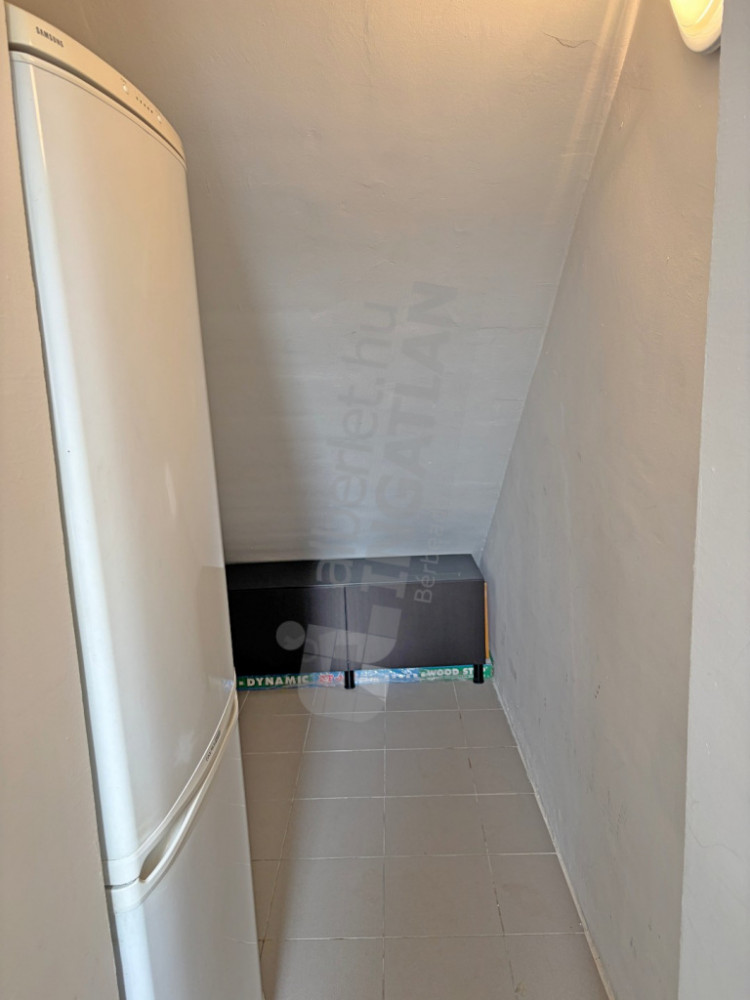 A lakáshoz tartozik egy 3 nm-es tároló a folyosón( hűtővel felszerelt ).