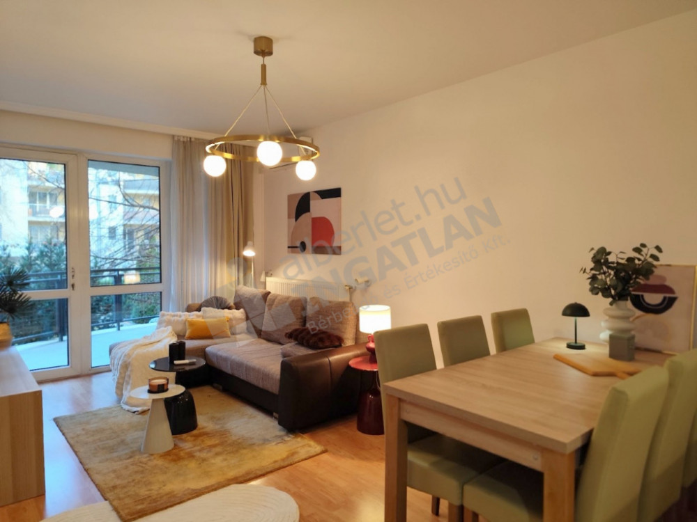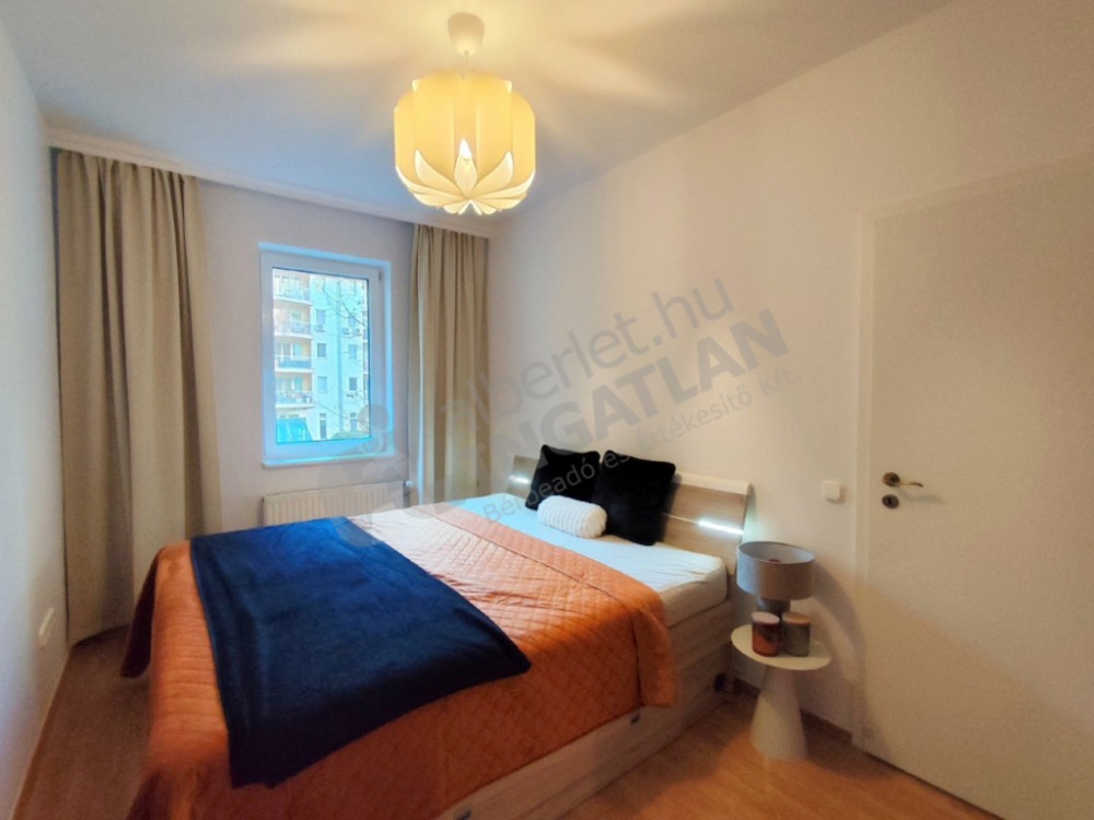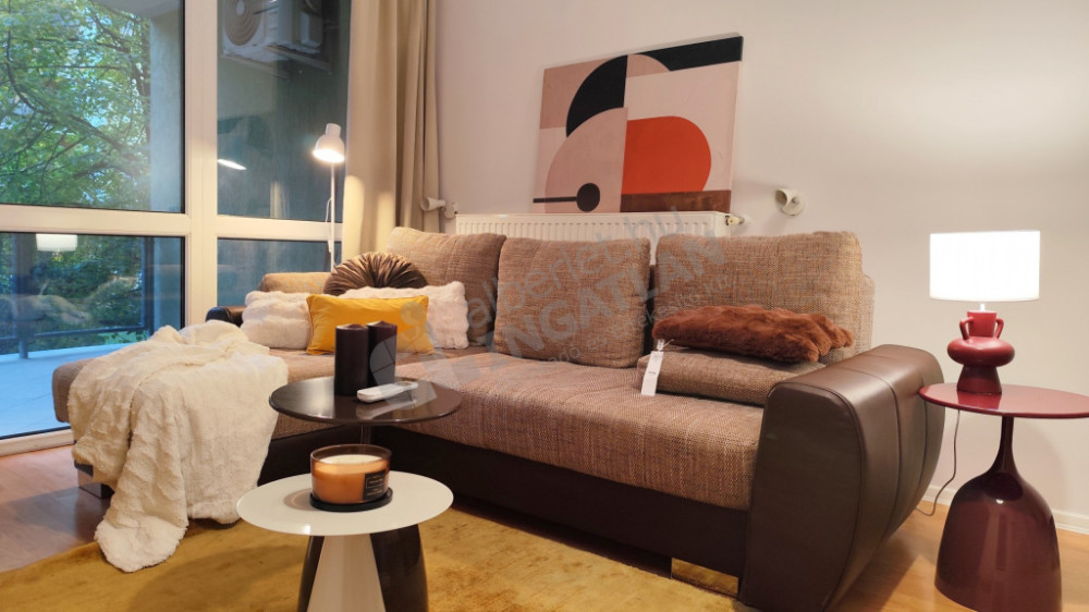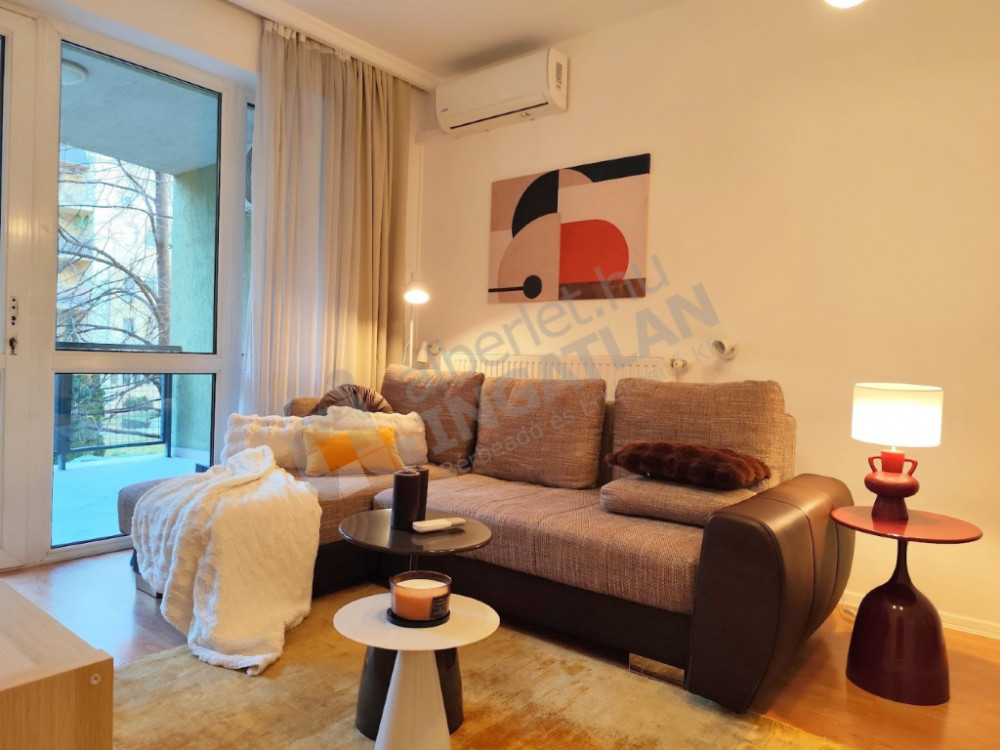 A lakás bútorozott és gépesített: elektromos sütő, főzőlap, szagelszívó, hűtő, mosógép, klíma.