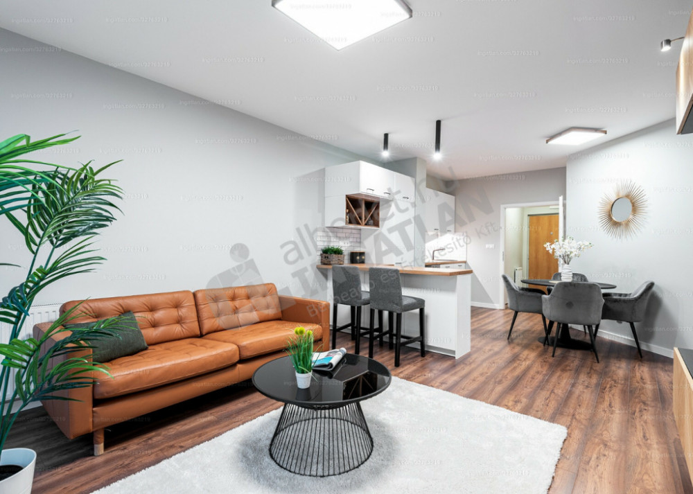 A nicely furnished, fully furnished and mechanized apartment is located on the second floor of a novel condominium with an elevator for long-term rent in the dynamically developing part of Budapest's 9th district, in Gát Street. The property consists of a living room with an American kitchen and a comfortable bedroom. The kitchen is equipped with all the necessary household appliances: built-in dishwasher, fridge, freezer, oven, ceramic hob and extractor hood ensure complete comfort, and the bathroom has a washing machine.