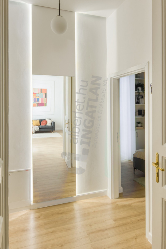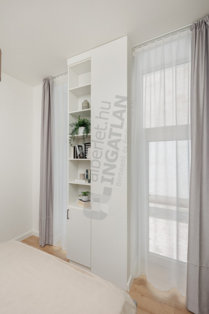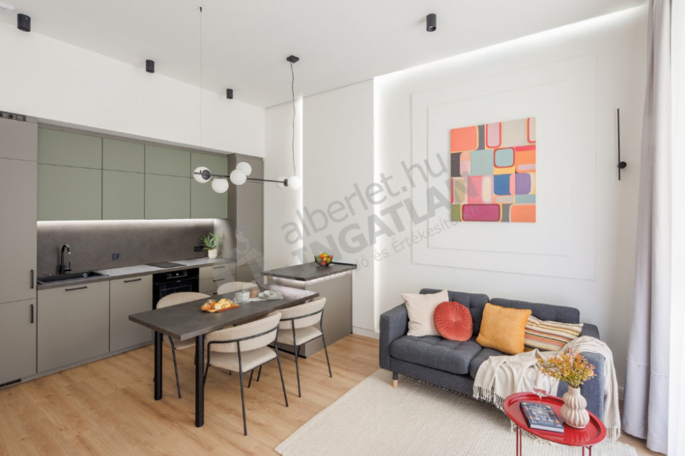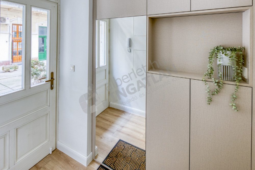 Frissen, teljes körűen felújított, 45 m²-es földszinti lakás kiadó, amerikai konyhás nappalival, hálószobával és fürdőszobával. A lakás belső udvarról nyílik, csendes, nyugodt környezetet biztosít.