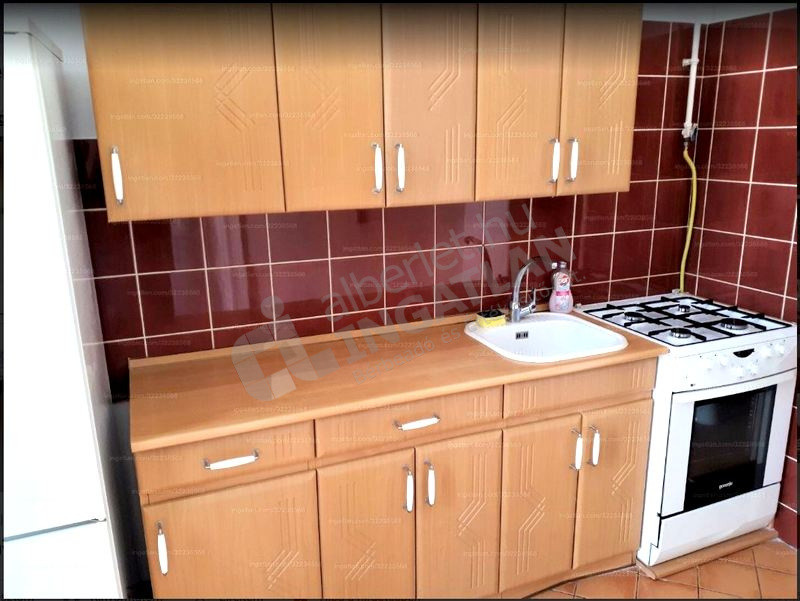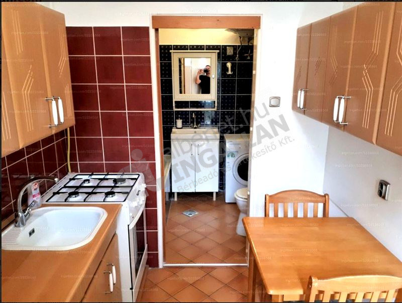 A konyhában gáztűzhely, hűtő és mikró van, innen nyílik a kádas fürdőszoba, mely a wc-vel egy légtérben található.