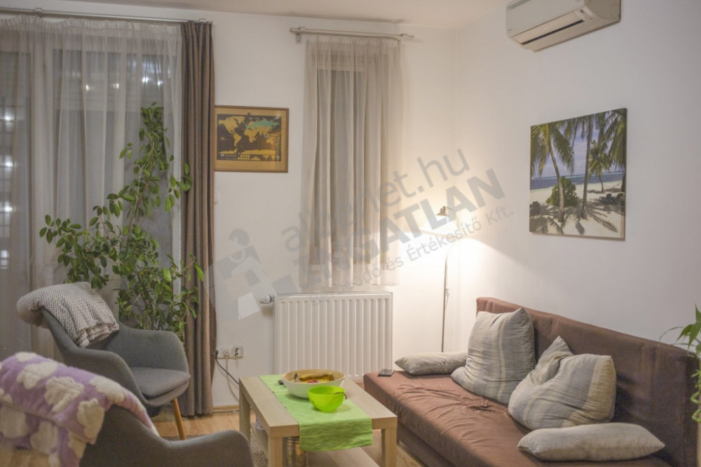 Kiadó egy 44 m²-es, erkélyes, klímás, 3. emeleti lakás a környék egyik legszebb, 2006-os, liftes társasházában. Csendes, napfényes otthon kertre néző kilátással.
