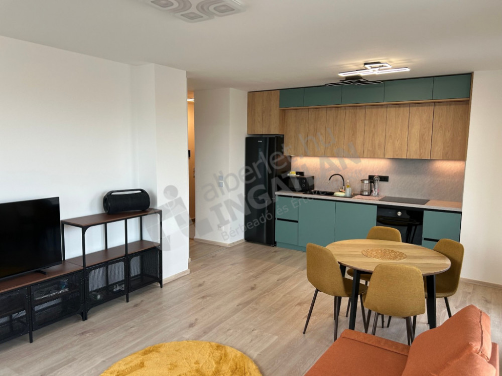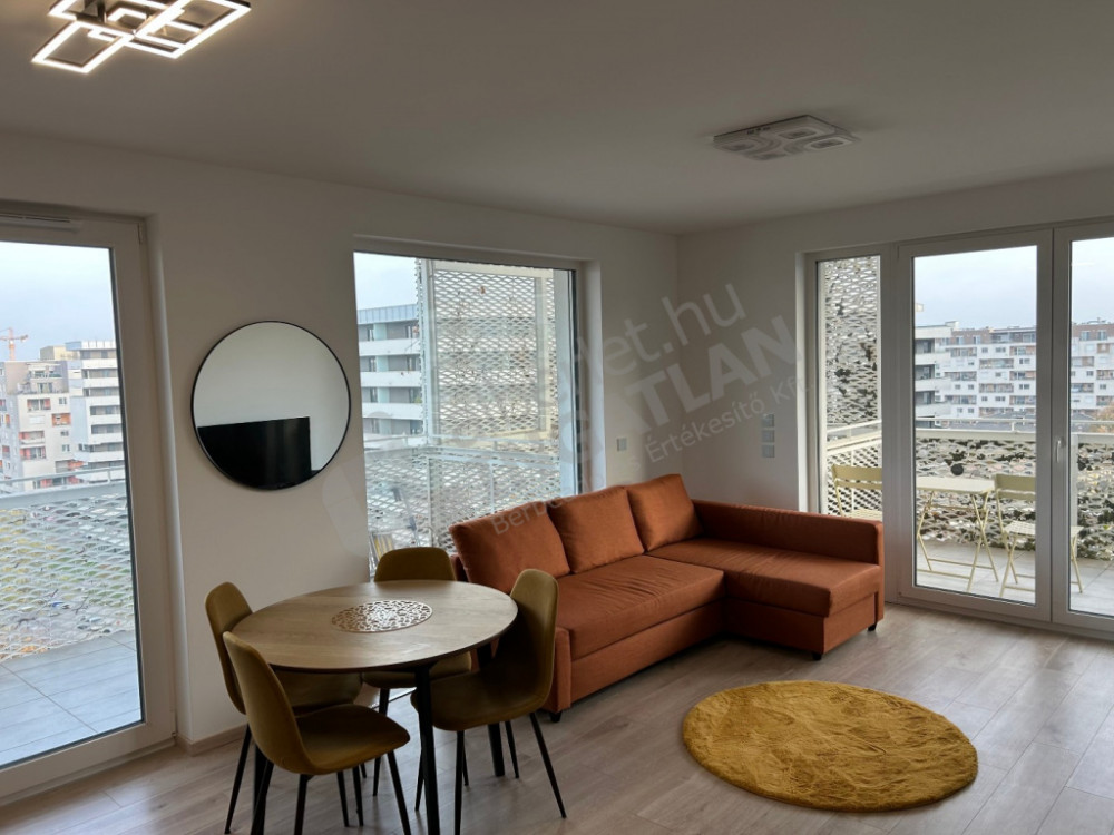 Vágóhíd utcában, Metrodome Green lakóparkban kiadó egy 9. emeleti, nagy erkélyes, két hálószobás lakás.