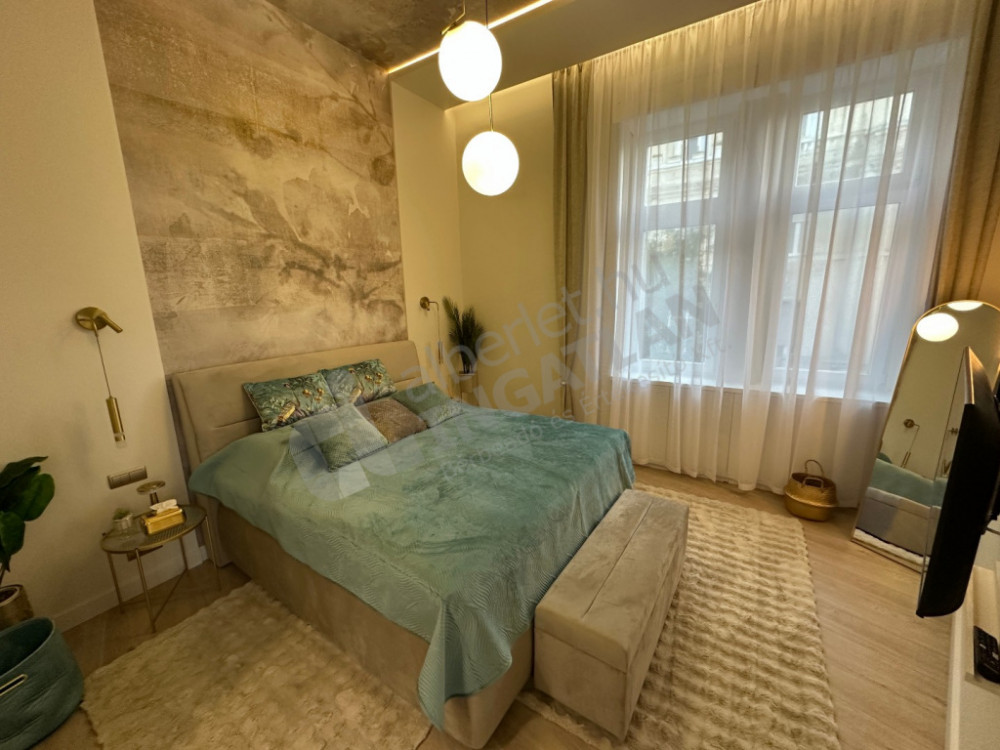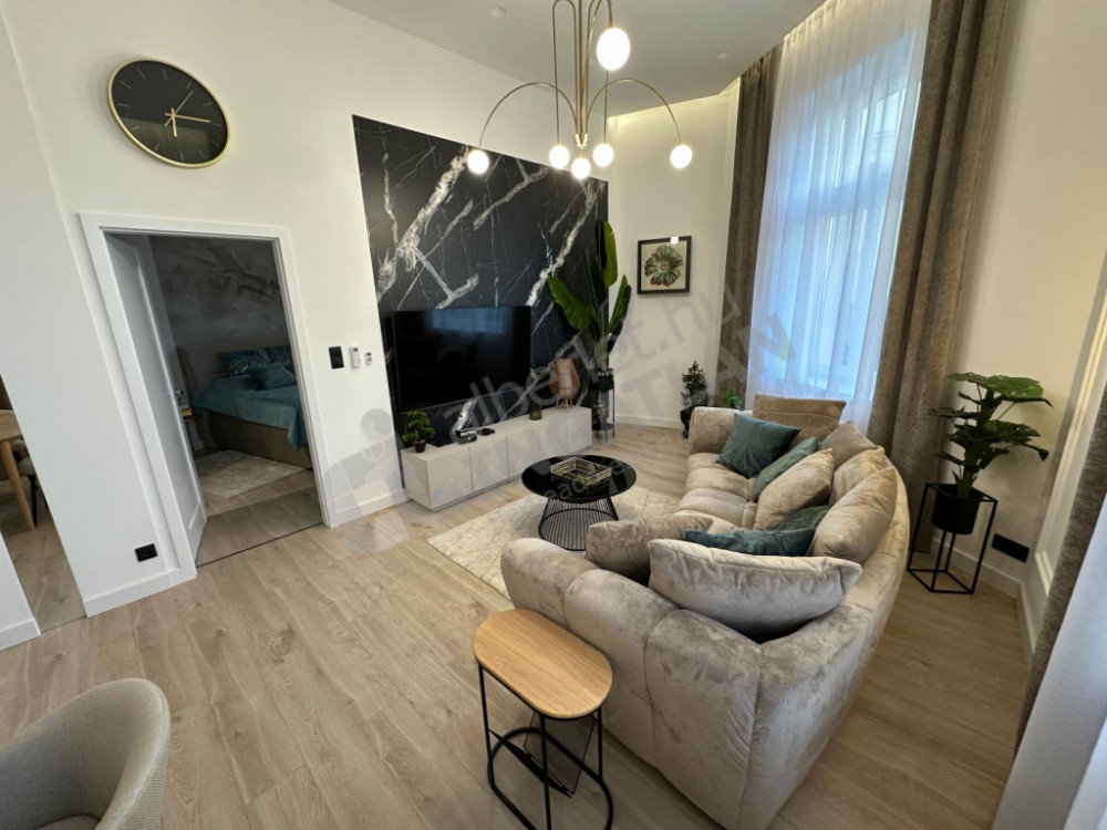 Tágas, prémium minőségben felújított, két hálószobás luxuslakás kiadó a Falk Miksa utcában.