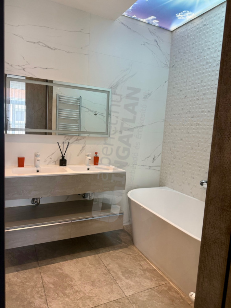Két hálószoba, két fürdő, egyik ablakból kis dunai kilátás.