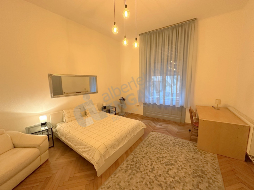 Egy nagyobb (24m2), és egy kisebb (12m2) hálószoba, a nappali és az egyik háló a Haris közre, a második szoba ablaka belső udvarra néz.