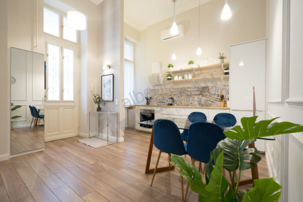 Honvéd utca elején, Vígszínháztól és Jászai Mari tértől pár perc sétára kiadó egy nappali plusz egy hálószobás, igényesen berendezett, klímás lakás.