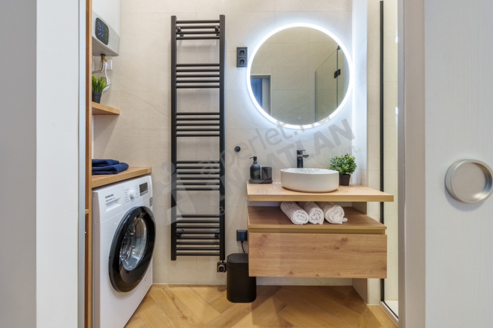 A kellemes hőmérsékletet wifi-n keresztül vezérelhető elektromos fűtőpanelek és klíma biztosítja, a víz melegítéséért pedig okos bojler felel.