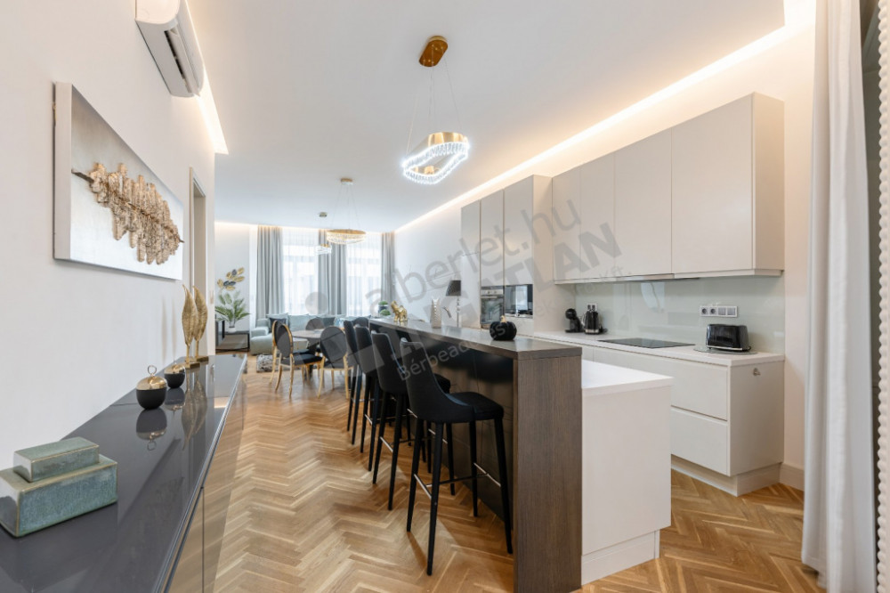 Kristóf téren kiadó egy négy hálószobás, két fürdőszobás prémium kategóriás lakás.