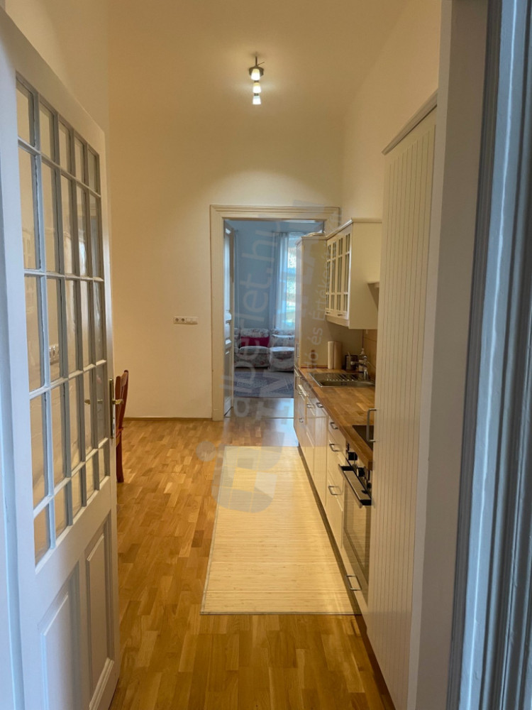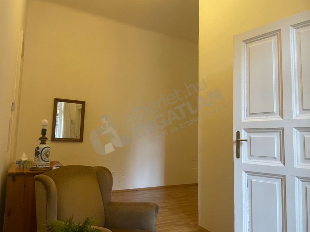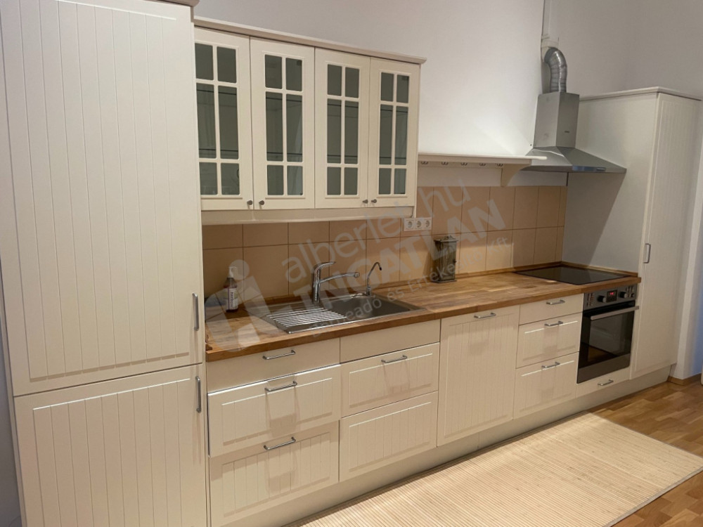 Lakás felszereltsége: konyha teljesen gépesített, részben bútorozott (igény esetén bútorozás megbeszélés tárgyát képzi), a képen látható antik írószekrény nem tartozik a lakáshoz